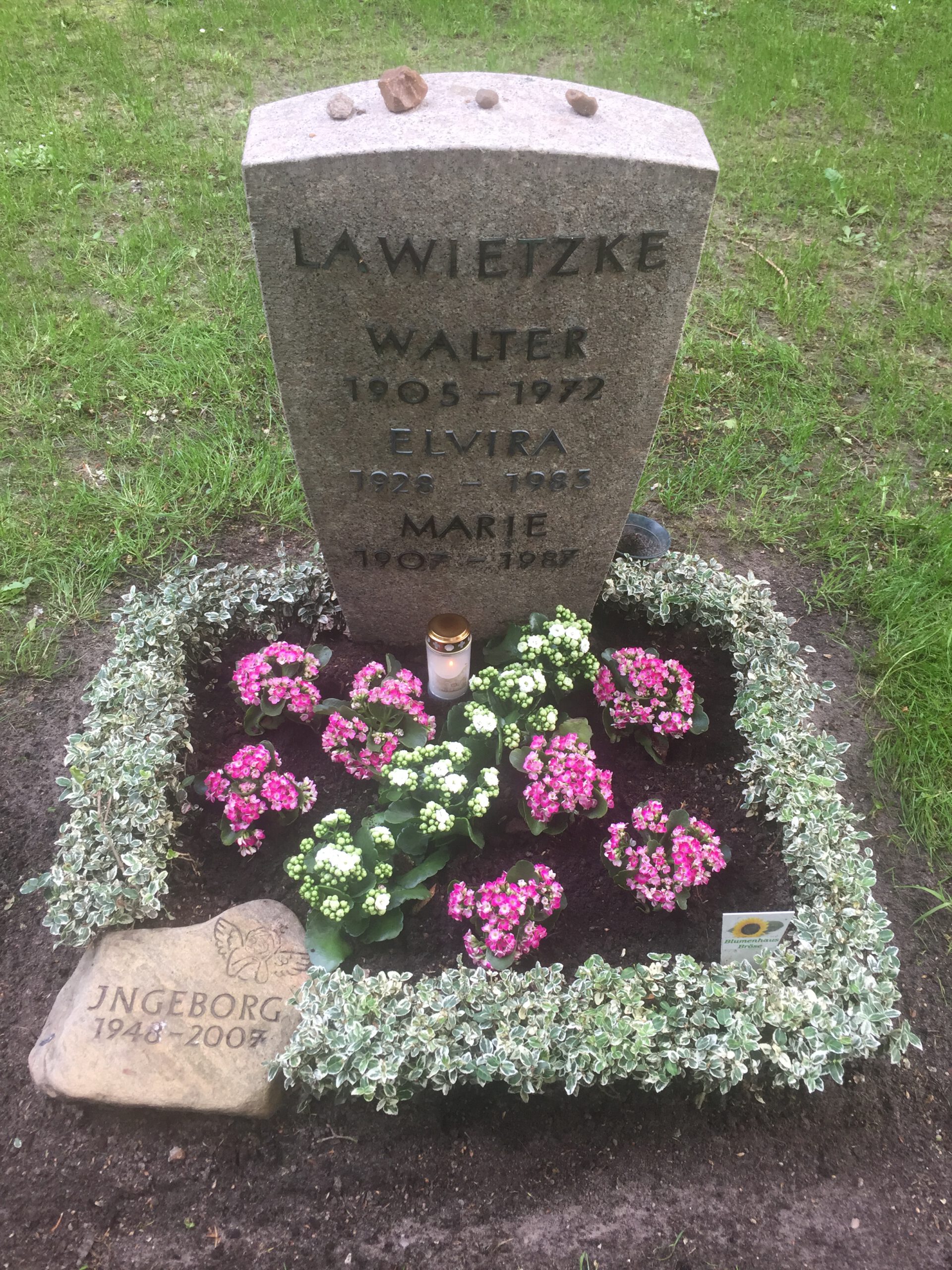 Wir übernehmen die Grabpflege und Bepflanzung auf den umliegenden Friedhöfen Schiffbek und Öjendorf. Egal, ob Sie eine einmalige Bepflanzung oder Neuanlegung wünschen oder es sich um die andauernde Pflege eines Grabes handelt, wir stehen Ihnen gerne zur Seite. Auch bieten wir verschiedene Kerzen, Vasen und sonstigen Grabschmuck in unseren Ladengeschäften zum Kauf an.