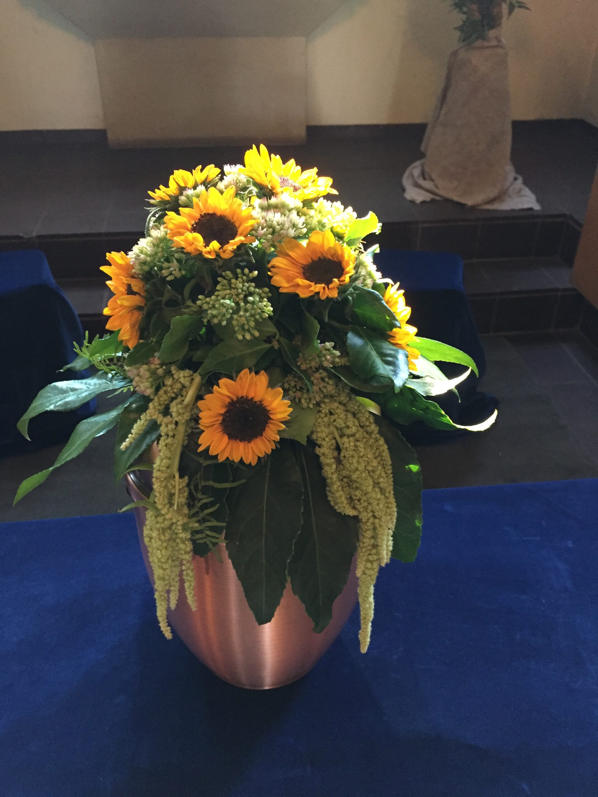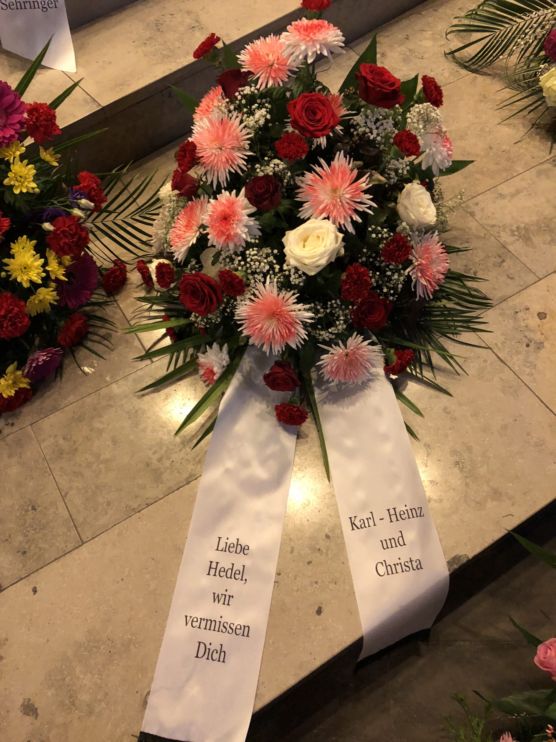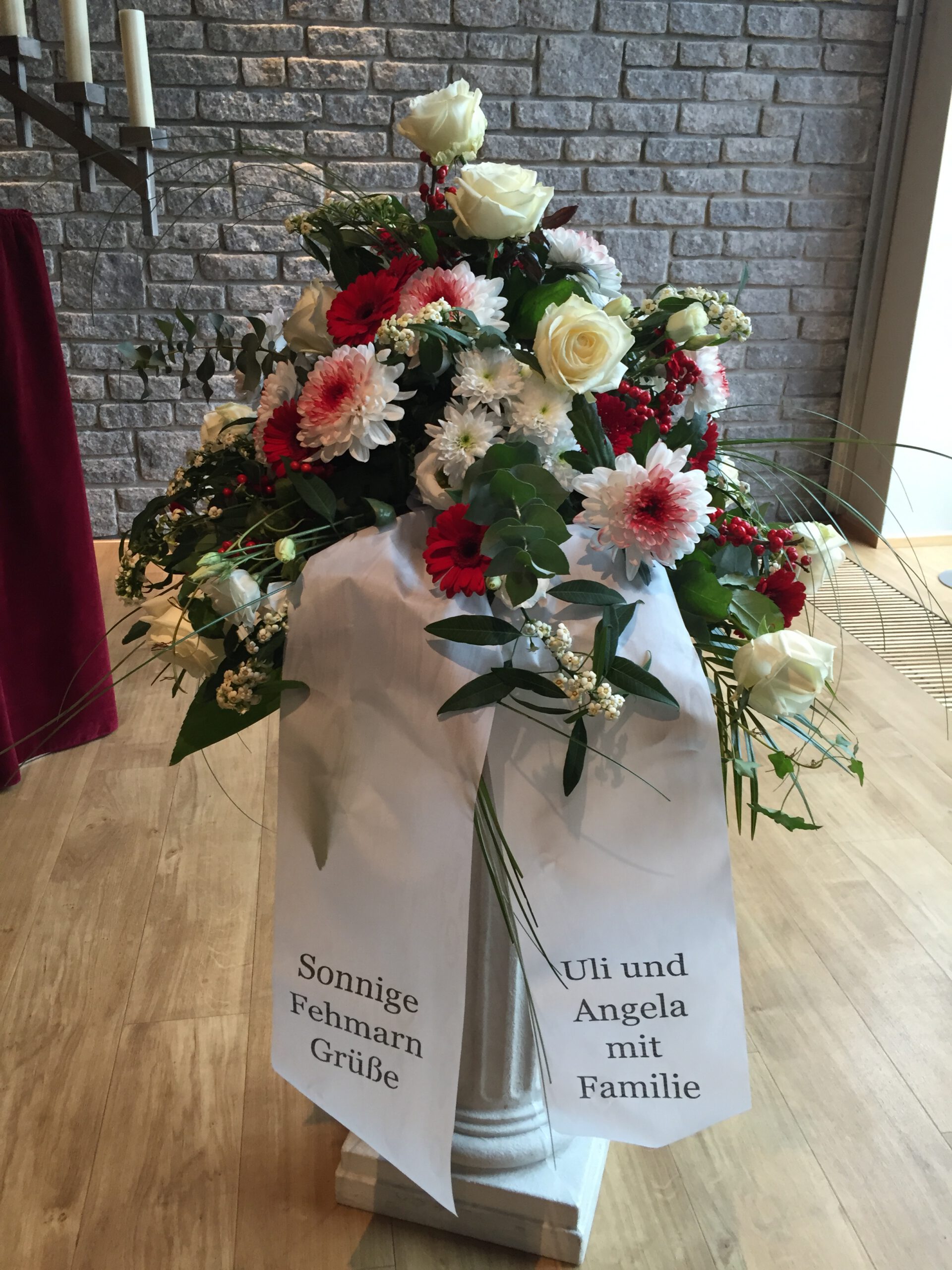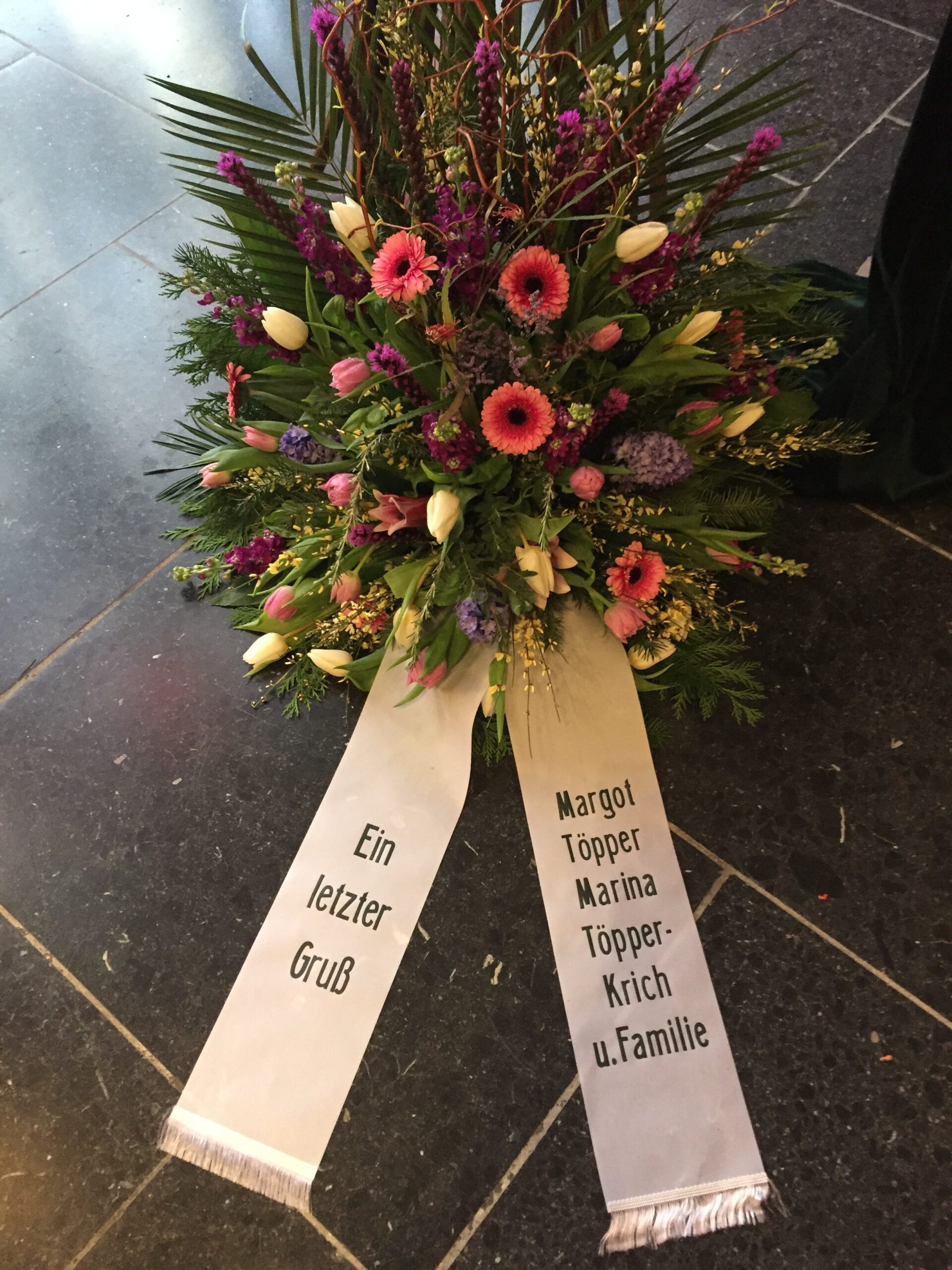 Passend zu Ihren Erinnerungen möchten wir das florale Umfeld schaffen. Dies wird den Abschied vermutlich nicht erleichtern, aber einen schönen Rahmen schaffen. Wir fertigen für Sie Sargdekorationen, Säulengestecke, verschiedene Trauergestecke, Trauerkränze, Liegesträuße und Urnenschmuck an. Ebenfalls ist es möglich einzelne Blumen oder Blütenblätter als Grabbeigabe zu bestellen. Die Schleifen für Gesteck und Kranz stellen wir in unserer Werkstatt selbst her – ganz nach Ihren Wünschen. Wenn Sie einen letzten Blumengruß für Ihre Liebsten, Freunde und Angehörige bestellen wollen, nehmen Sie Kontakt zu uns auf und wir besprechen Ihre Vorstellungen.